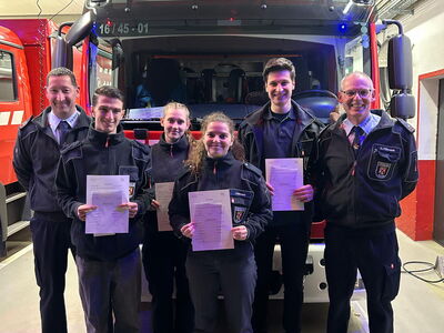 Marco Hahn, Elias Löhr, Oliver Holzleitner haben die Ausbildung zum Truppführer abgeschlossen.